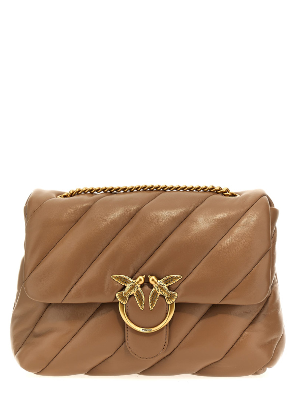 Ženska bež Pinko 'Love Bag' prošivena kožna torba prekoramena