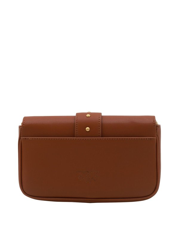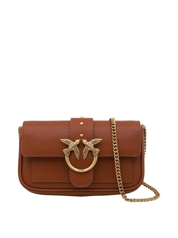 Pinko smeđa torba za rame s jednostavnim džepom i odvojivim antiknim lancem s kopčom s pticicama, glavnim pretincem, džepom s patentnim zatvaračem i utorima za kartice