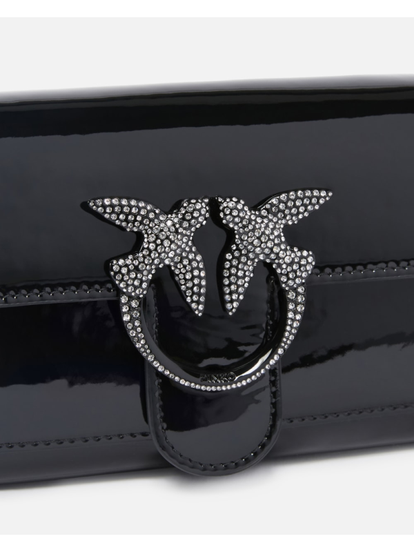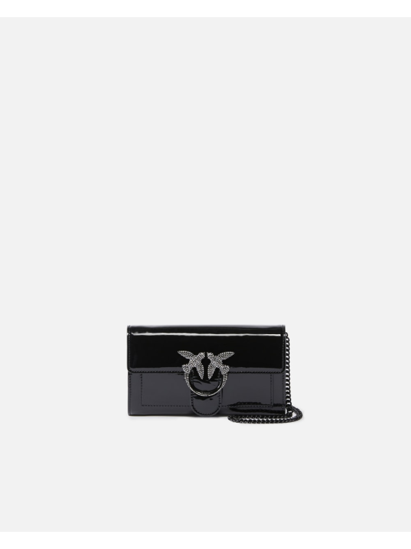 Ženski novčanik izrađen od tkanine s lakiranim premazom i vrlo sjajnom završnom obradom, personaliziran Love Birds Diamond Cut kopčom od sjajnog emajliranog metala, ukrašen pločom od kristala.