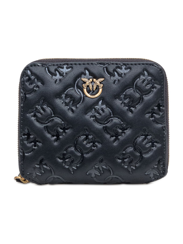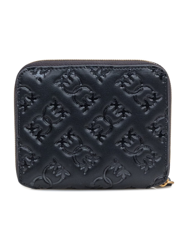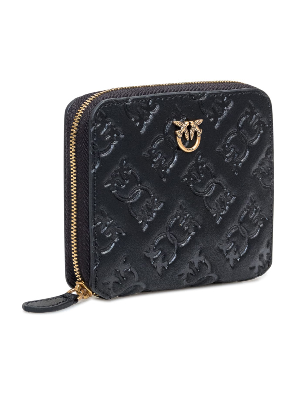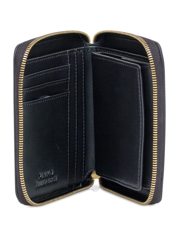 Ženski crni kožni Pinko novčanik s dijamantnim Love Birds logom na prednjoj strani