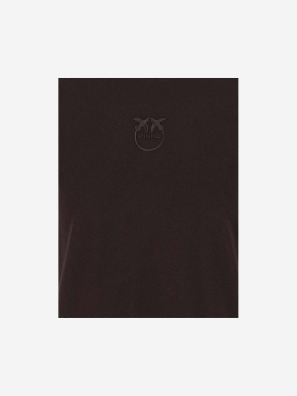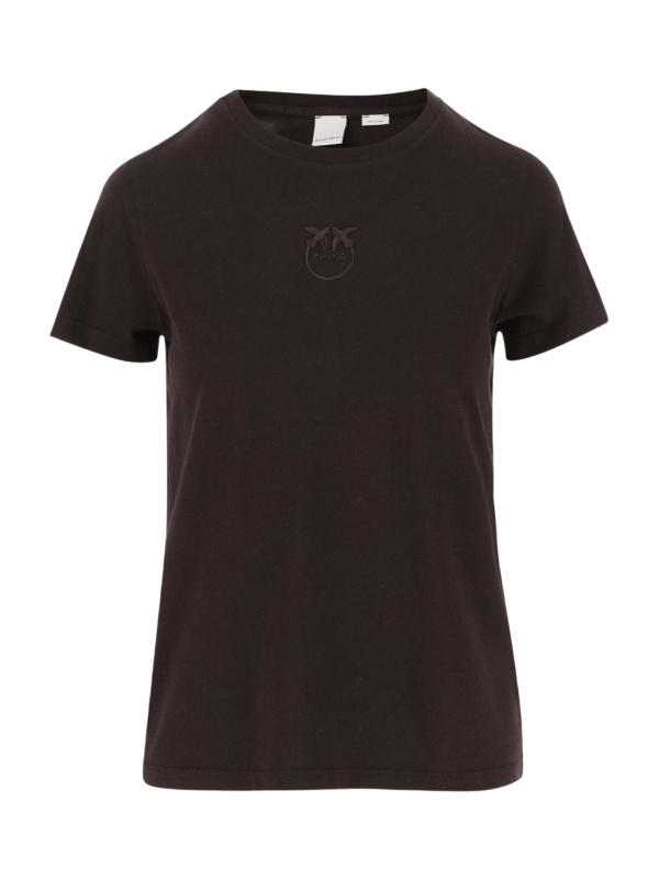 Ženska smeđa pamučna Pinko majica s izvezenim logom na prsima