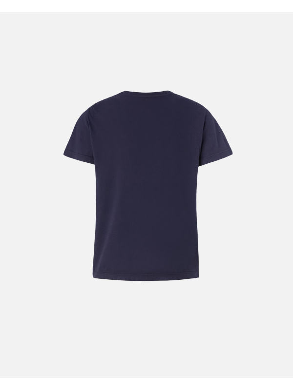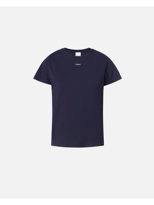 Ženska tamnoplava Pinko majica kratkih rukava od pamučnog ispranog žerseja s centralnim mini Pinko logom