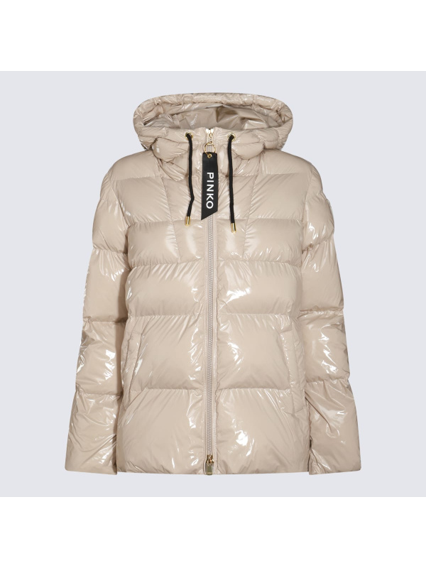 Ženska bež prošivena Pinko puffer jakna s visokim ovratnikom