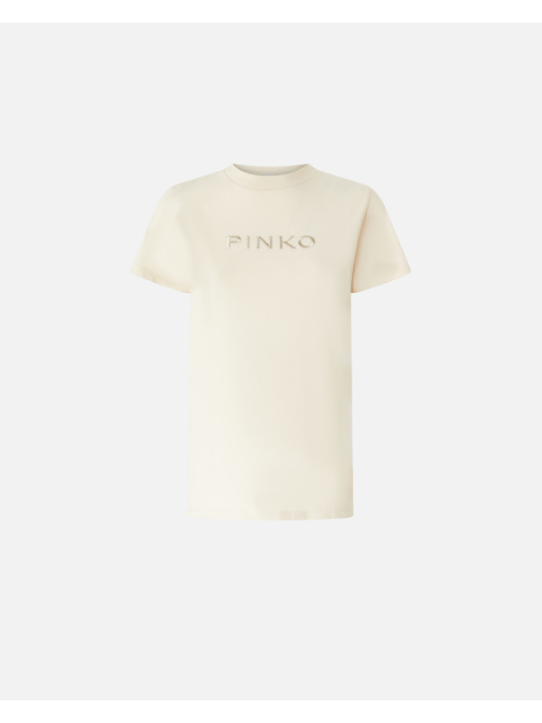 Ženska prljavo bijela Pinko majica s polurukavima od pamučnog žerseja s posebnim tretmanom starog pranja