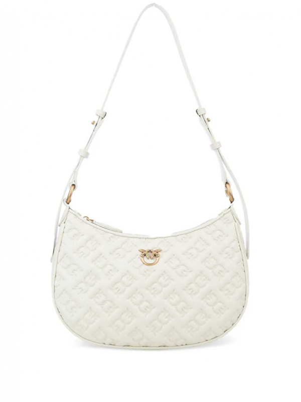 Ženska Pinko bijela 'half moon' torba s all-over reljefnim monogramom