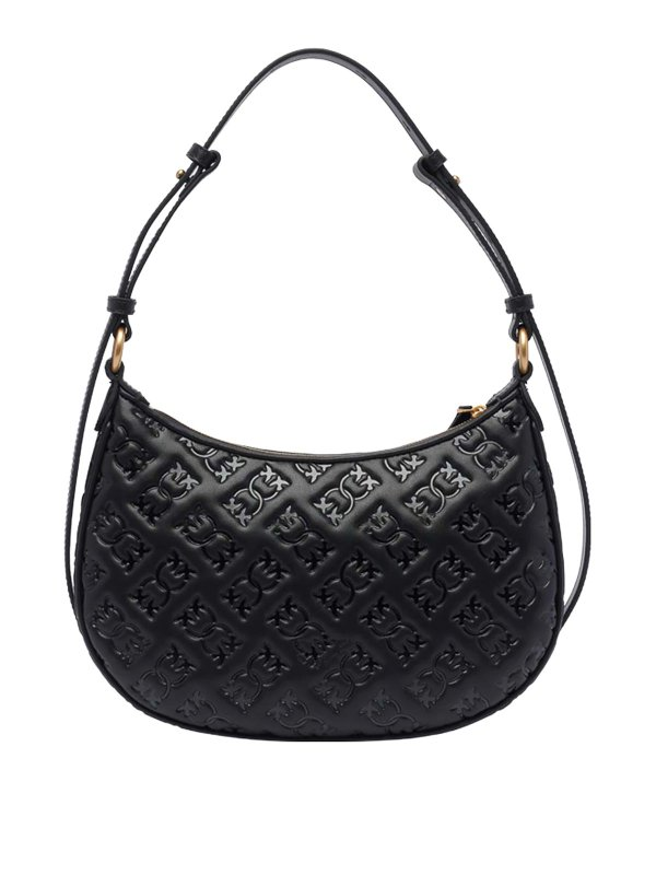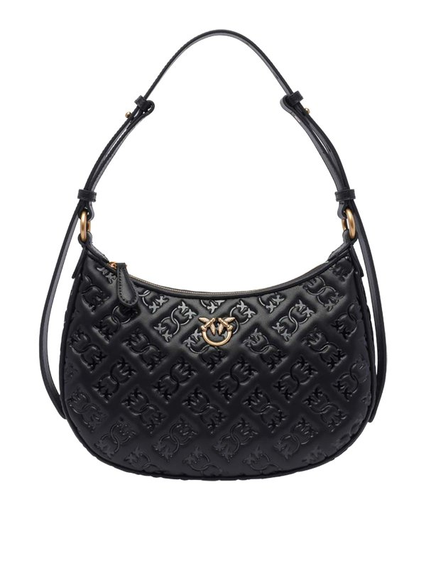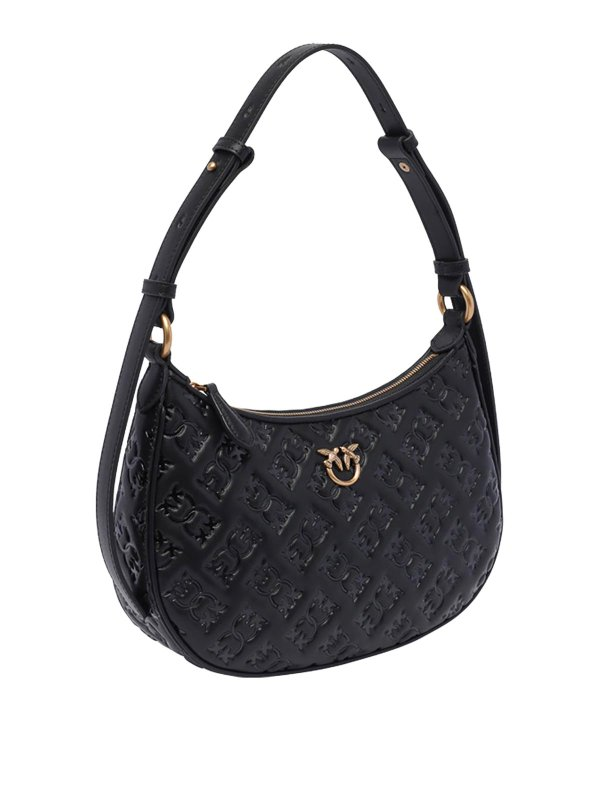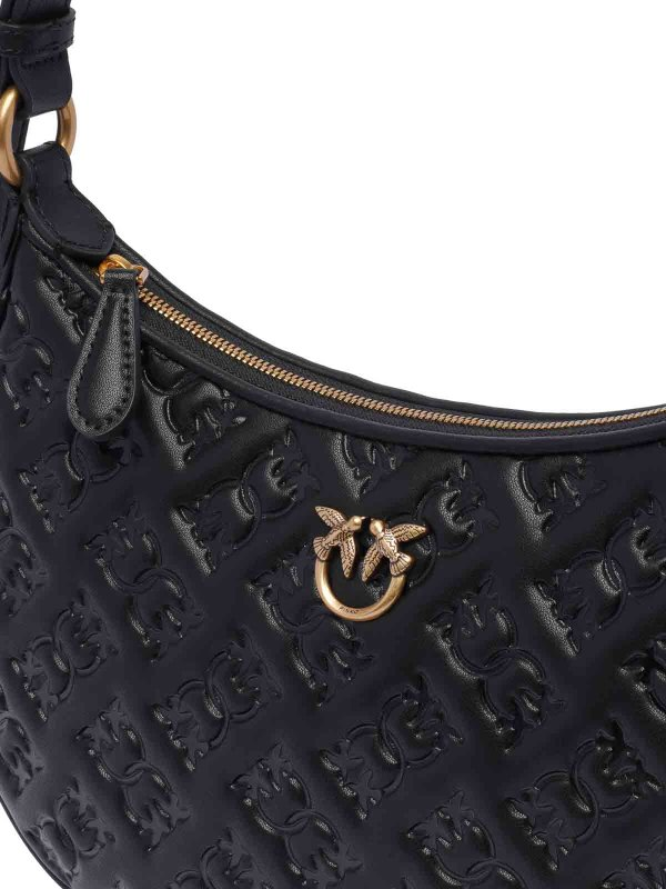 Ženska crna Pinko 'half moon' torba s reljefnim all-over monogramom