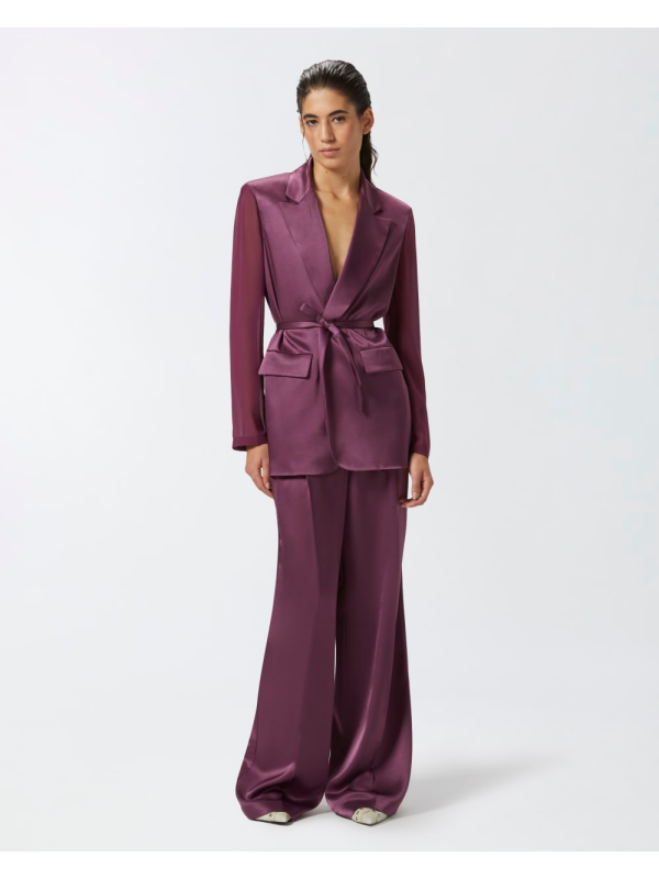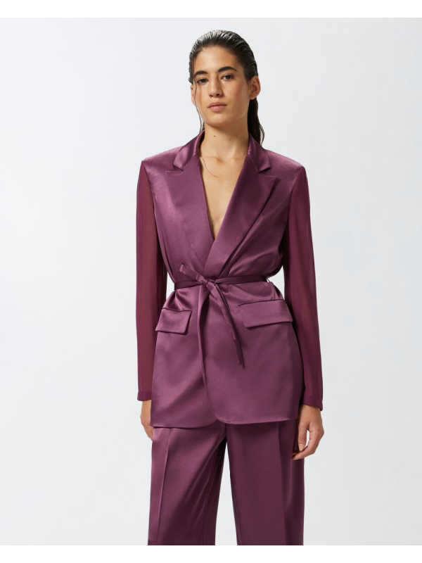 Sako od sjajnog satena s dugim rukavima od kontrastne, poluprozirne žoržet tkanine.