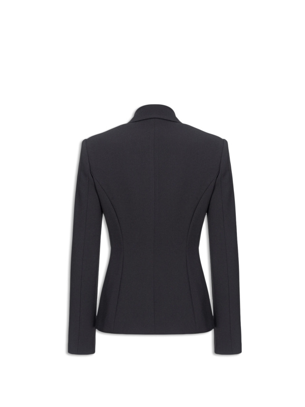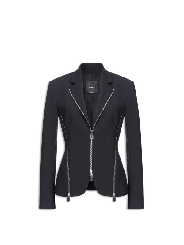 Ženska crna Pinko jakna od rastezljive krep tkanine s bočnim metalnim patetnim zatvaračima koji vam omogućuju da jaknu nosite otvorenu na bokovima ili zakopčanu