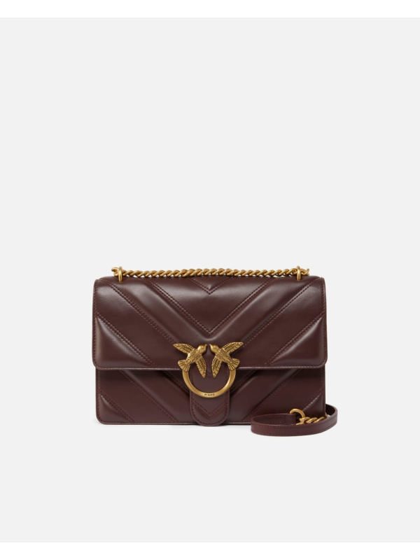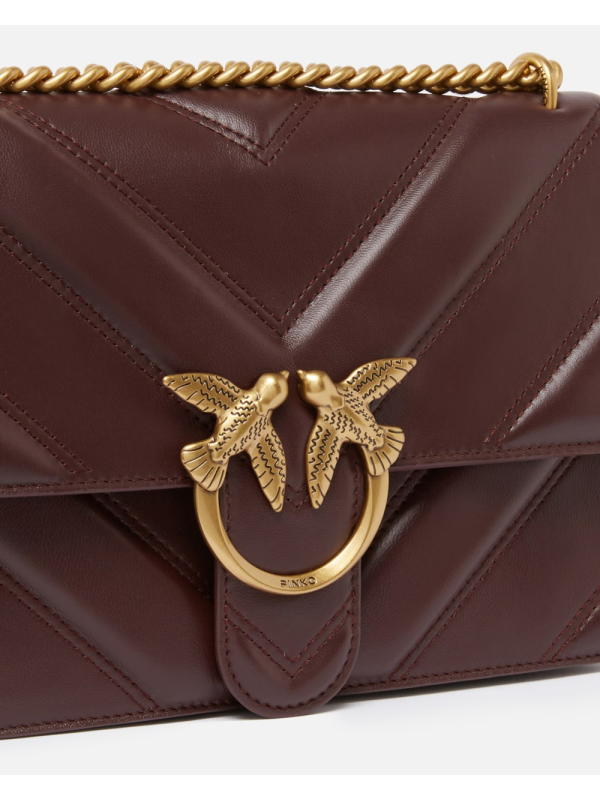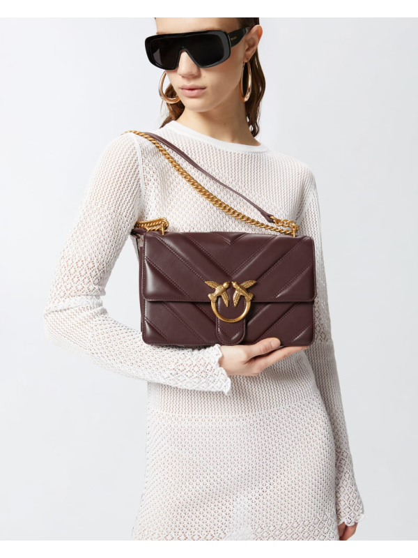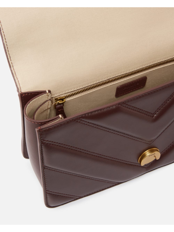 Ženska bordo Pinko torba preko ramena od nappa kože s izdignutim umetcima koji stvaraju prošiveni efekt s uzorkom ševrona