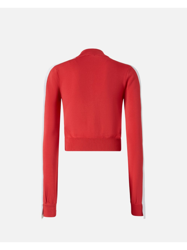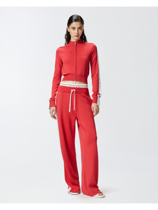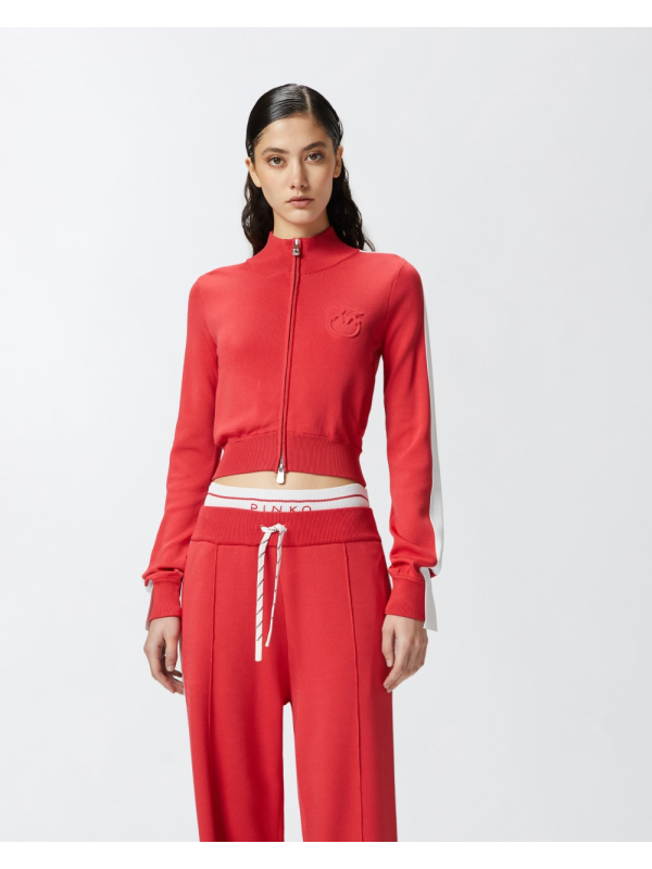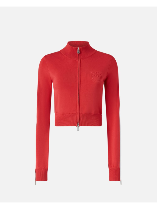 Ženski crveni Pinko kratki pulover od tehničke tkanine s logotipom i patetnim zatvaračem