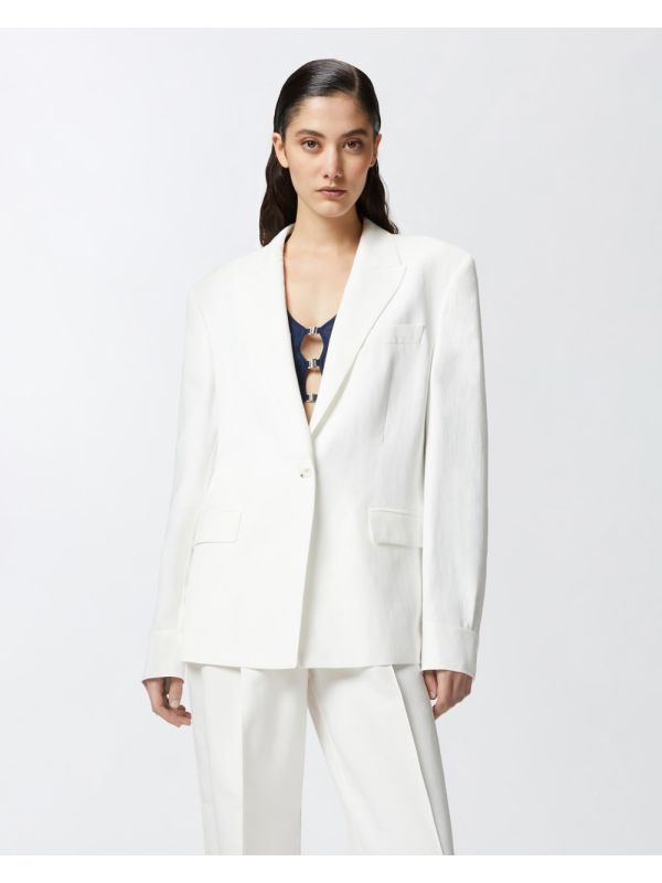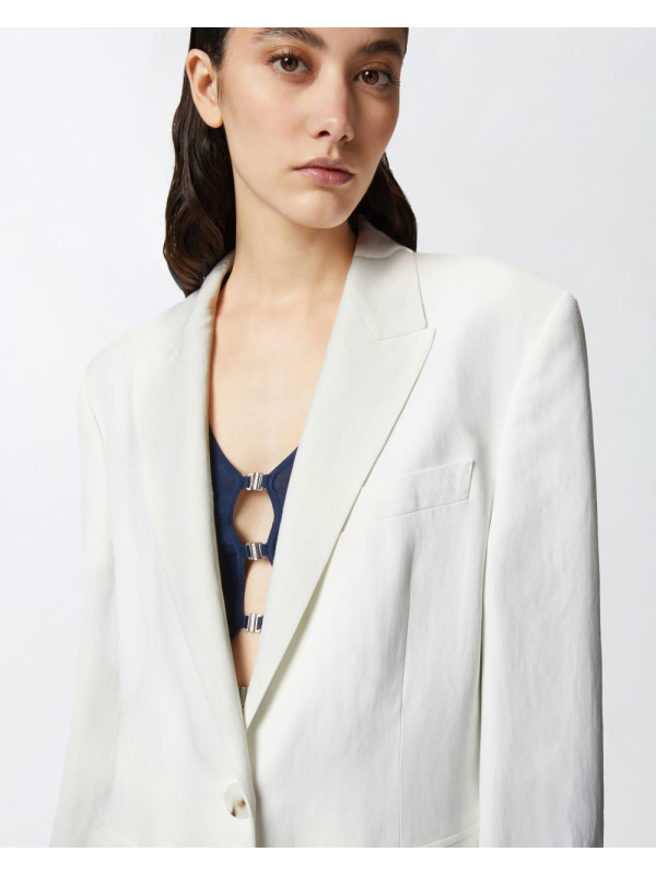 Ženski sniježno-bijeli Pinko jednoredni sako s remenom na leđima