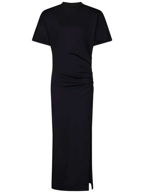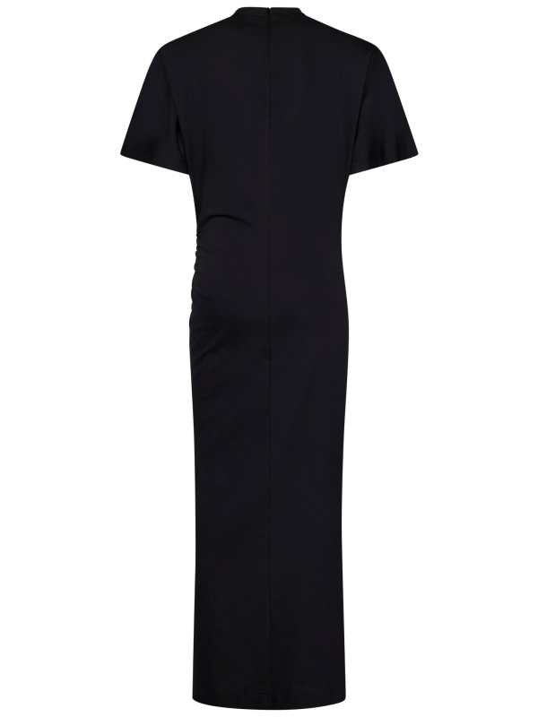 Ženska duga crna Pinko haljina od crnog kompaktnog žerseja s podstavljenim ramenima i prorezom sa strane