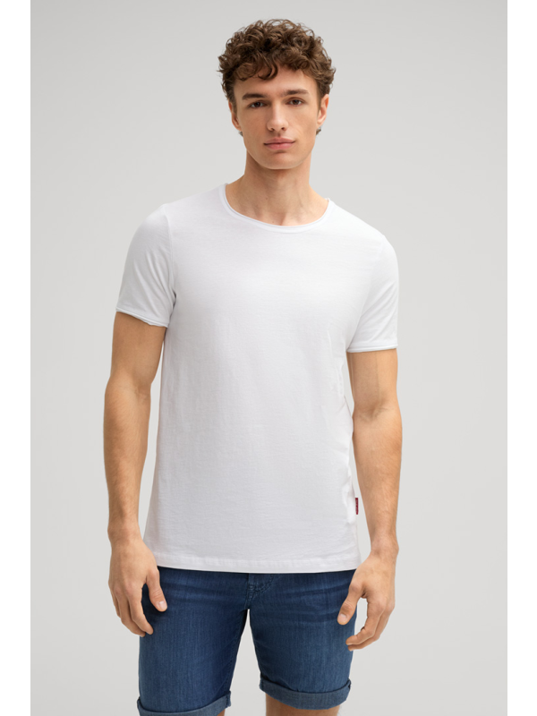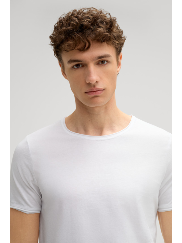 Tkanina od čistog pamuka daje udobnu završnicu, dok zarolani rubovi na okruglom dekolteu i manšetama dodaju ležerne akcente.