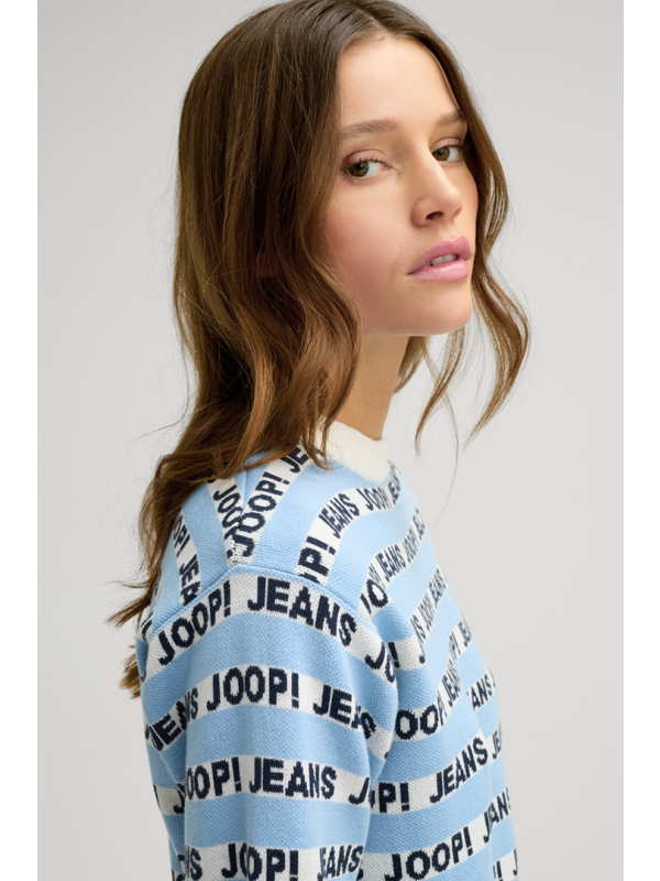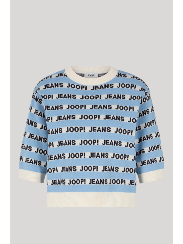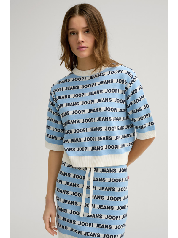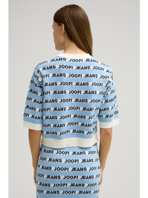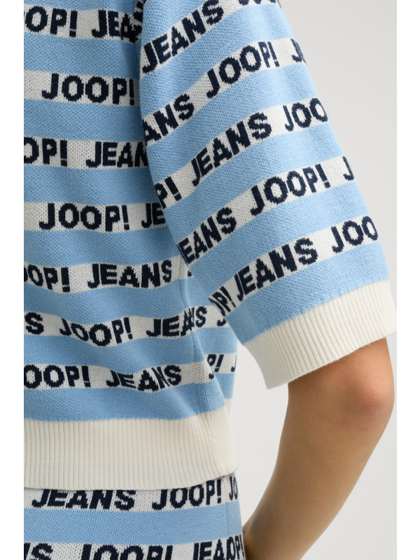 Ženska pletena JOOP! Kolinda majica kratkih rukava na pruge u kombinaciji svijetloplave i bijele boje