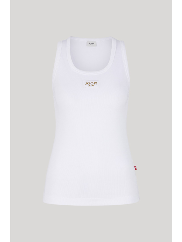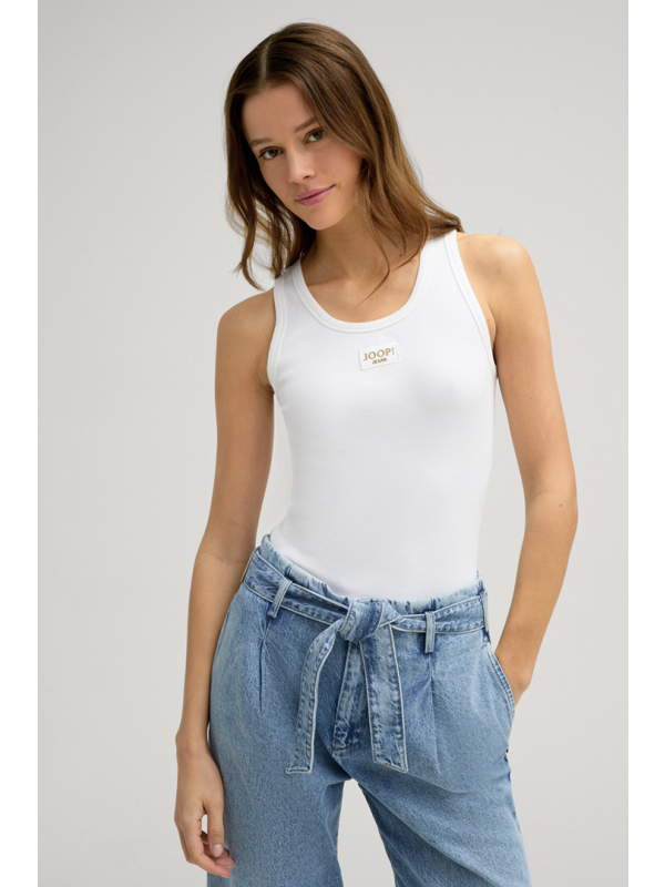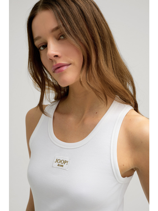 Ženski bijeli rebrasti JOOP! top s logom na prsima