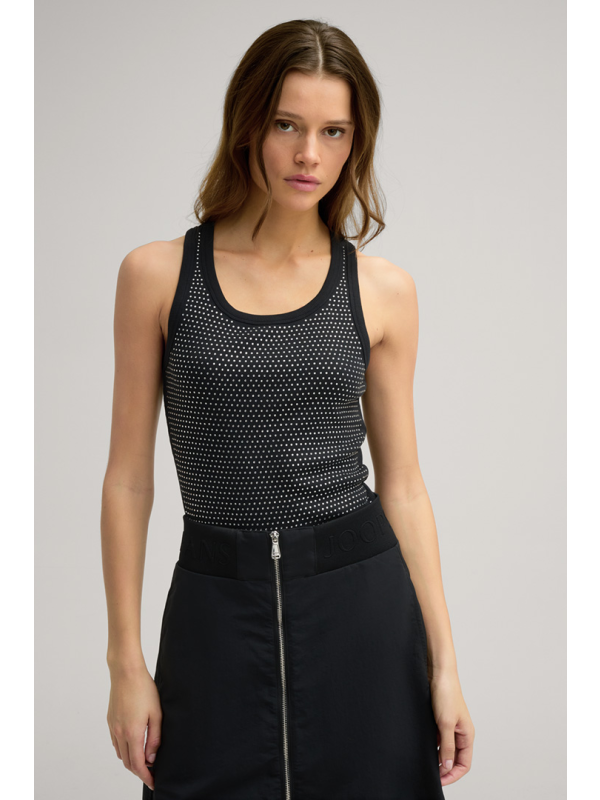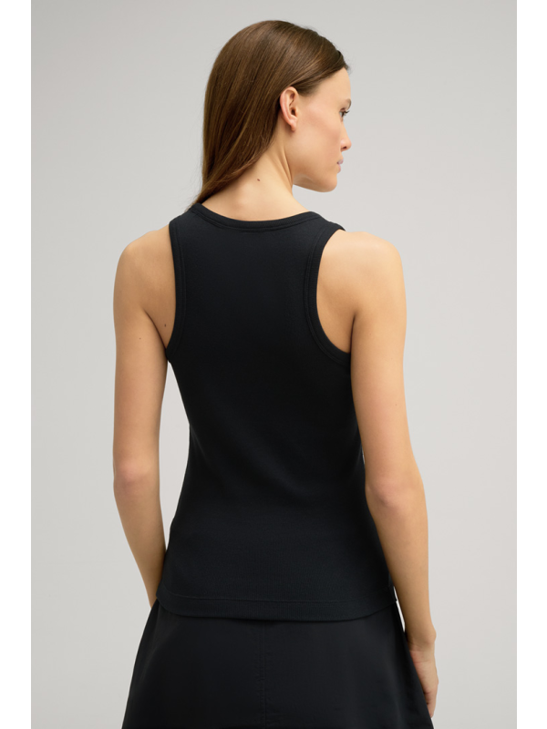 Ovaj rebrasti top od rastezljivog pamuka s klasičnim okruglim izrezom impresionira kao moderan komad za kombiniranje uz hlače, traperice i suknje.