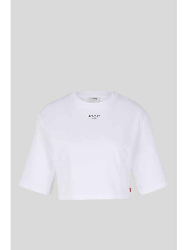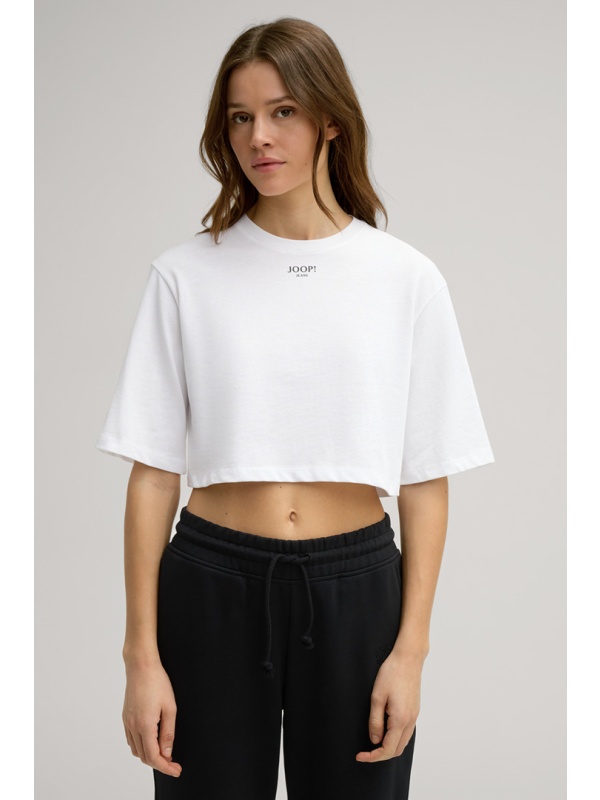 Ženska bijela skraćena JOOP! Taky majica kratkih rukava s logom na prsima