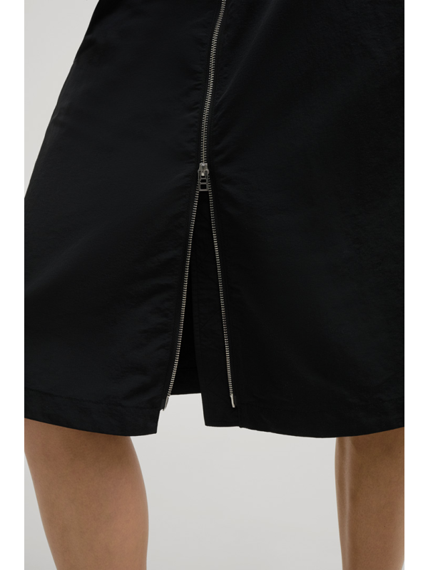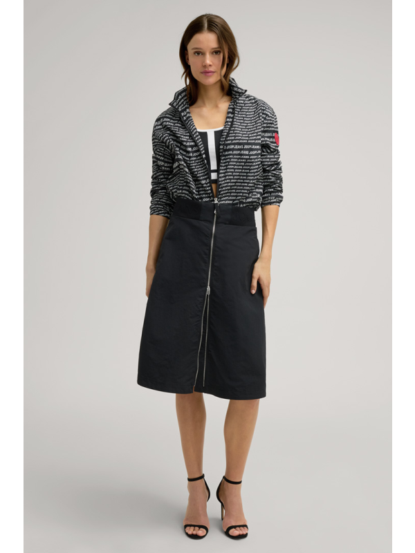 Elastični jacquard pojas s logotipom i dvosmjerni patentni zatvarač osiguravaju maksimalnu udobnost, upotpunjenu šavovima prekrivenim bočnim džepovima s prorezima.