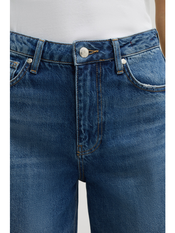 Fiksni zaokreti zaštitni su znak ovog komada, klasično nadopunjeni dizajnom s pet džepova i omčama za remen.