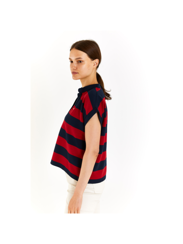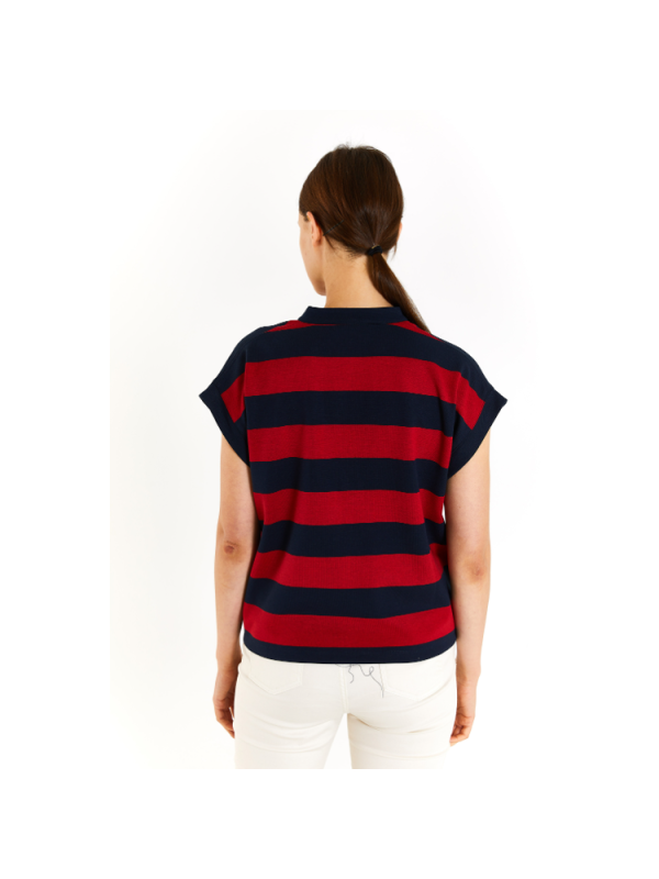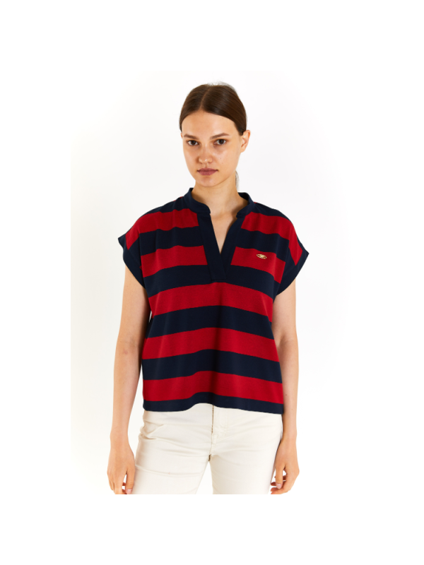 Ženska U.S. POLO ASSN. majica na tamnoplave/crvene pruge s logom