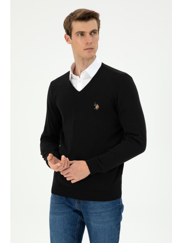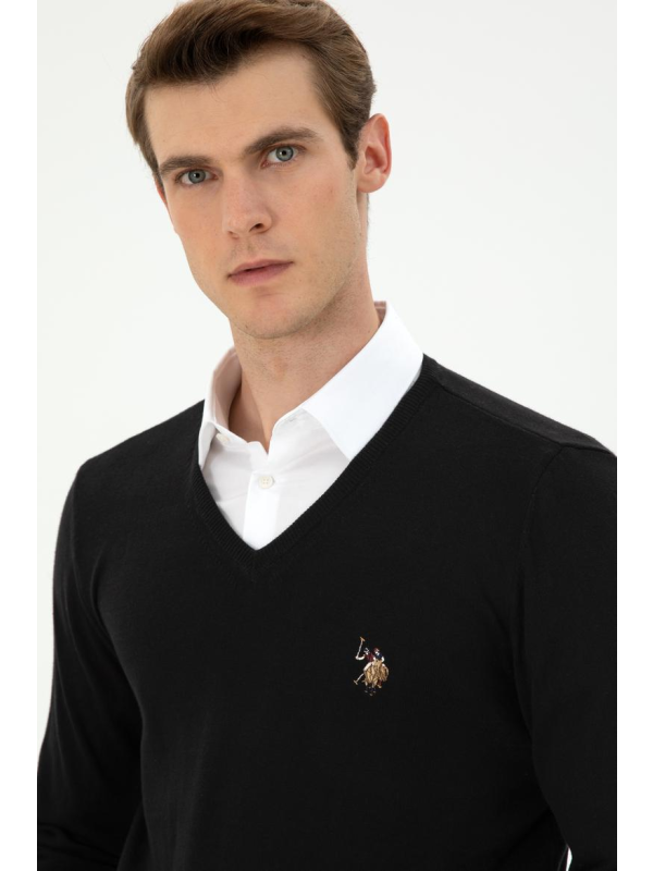 Muški crni U.S. POLO ASSN. pulover na V izrez