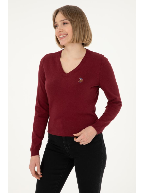 Ženski U.S. POLO ASSN. bordo pulover s logom