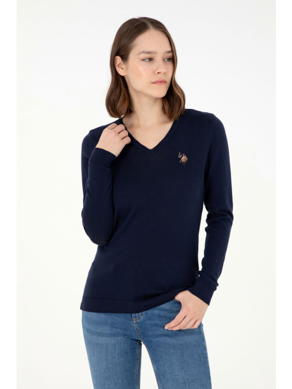 Ženski tamnoplavi USPA pulover na V izrez