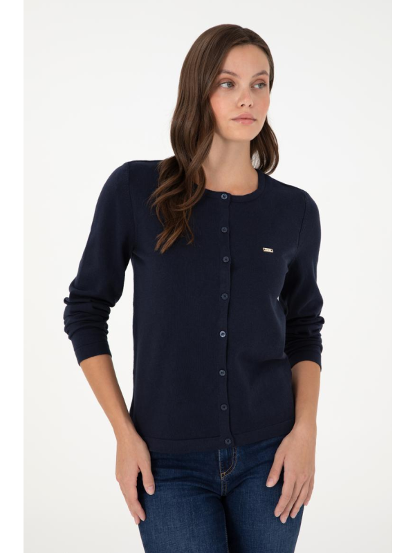 Ženski tamnoplavi U.S. POLO ASSN. pulover na kopčanje