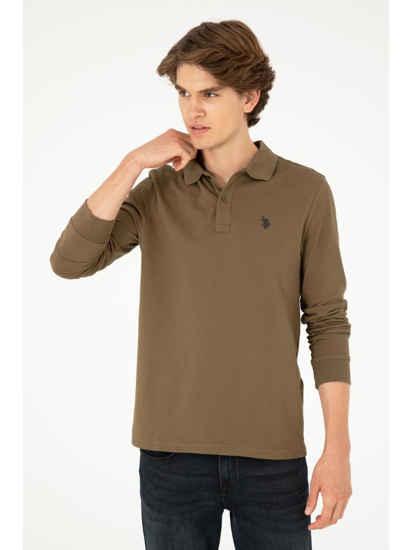 Muška khaki USPA polo majica dugih rukava s logom