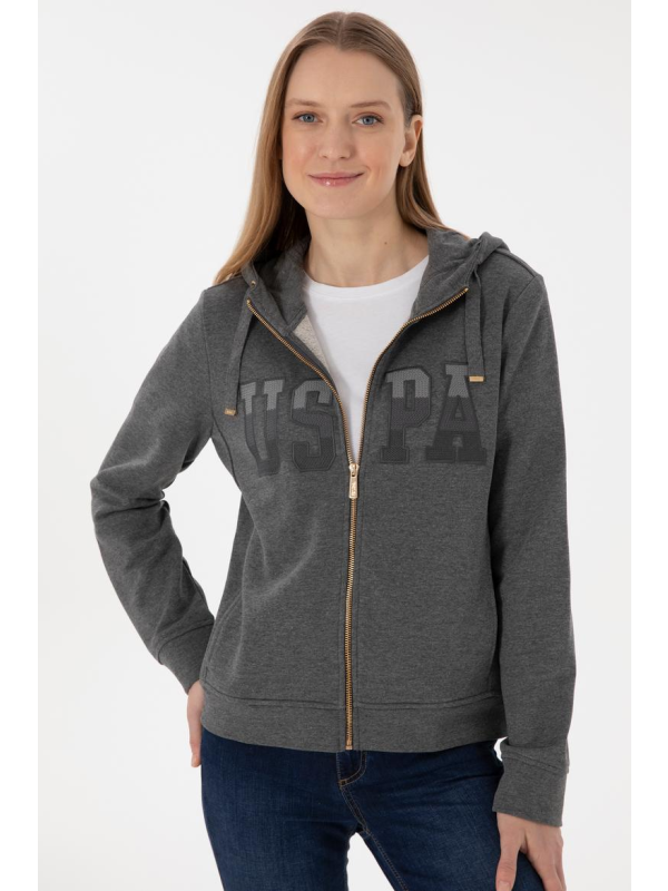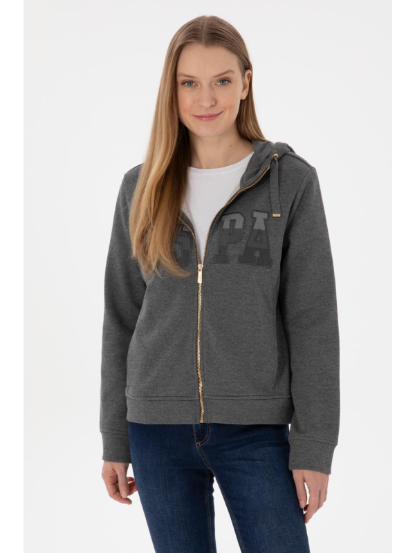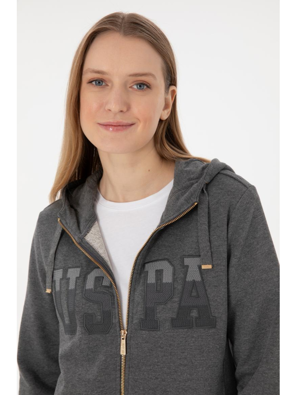 Ženska tamnosiva U.S. POLO ASSN. majica s patentnim zatvaračem i kapuljačom