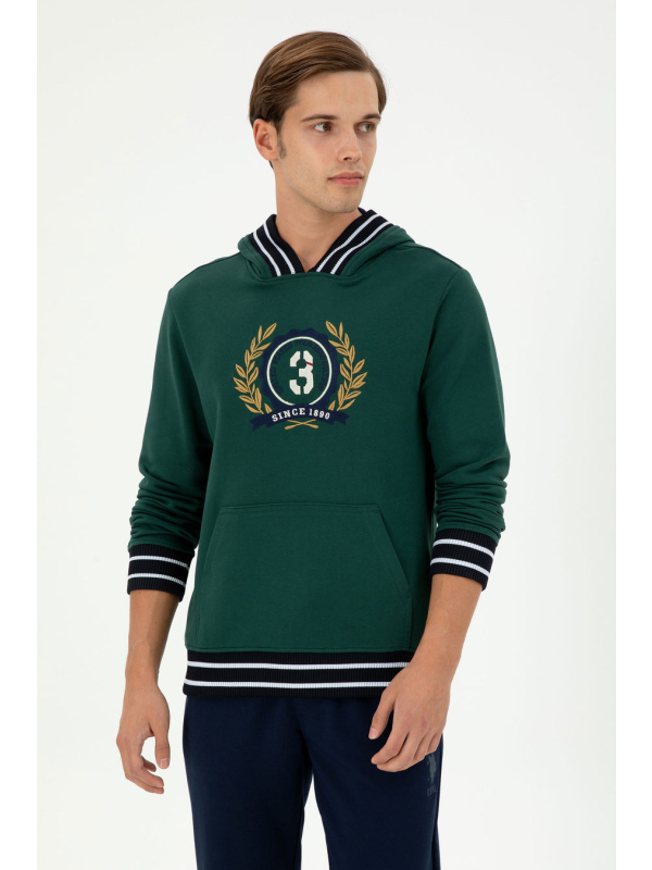 Muška zelena USPA majica s kapuljačom i printom na prsima
