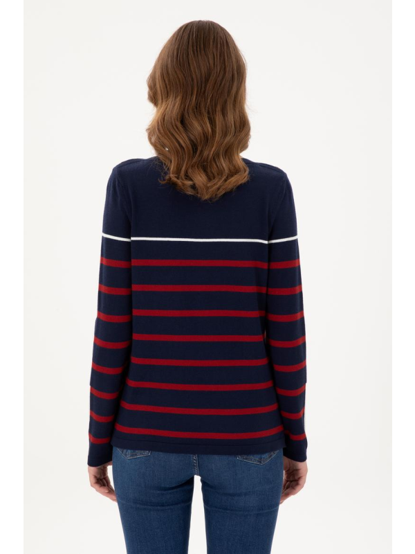 Ženski tamnoplavi USPA pulover s linijama u boji