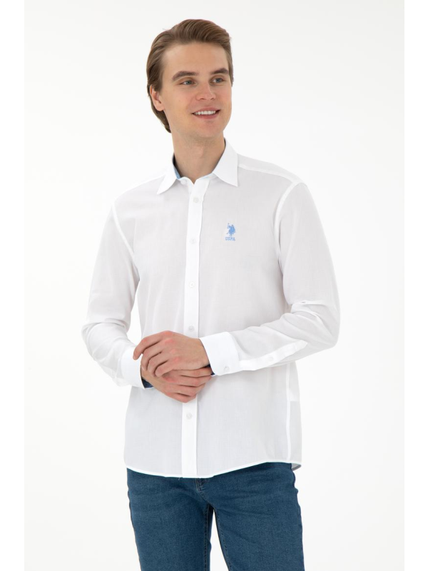 Muška bijela U.S. POLO ASSN. košulja dugih rukava s logom