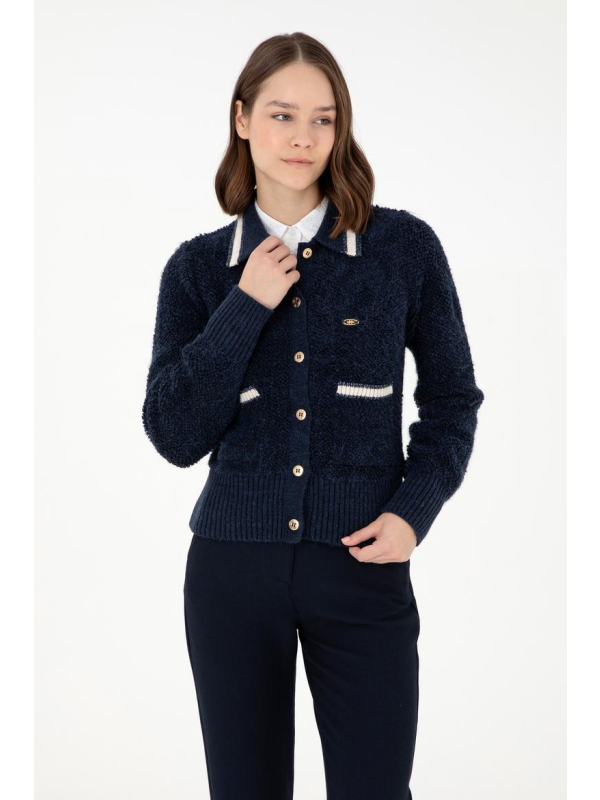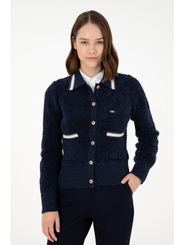 Ženski tamnoplavi U.S. POLO ASSN. pulover na kopčanje