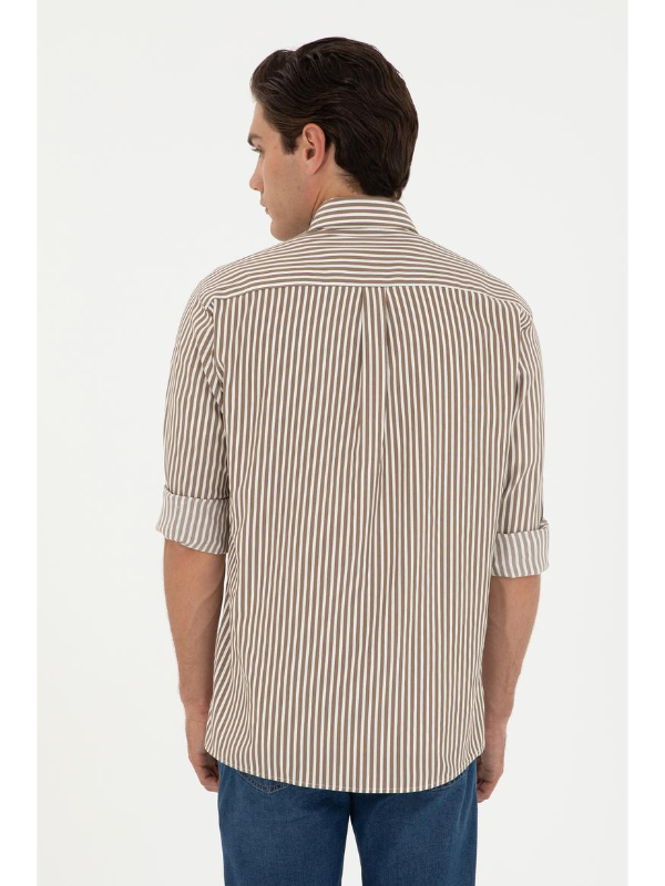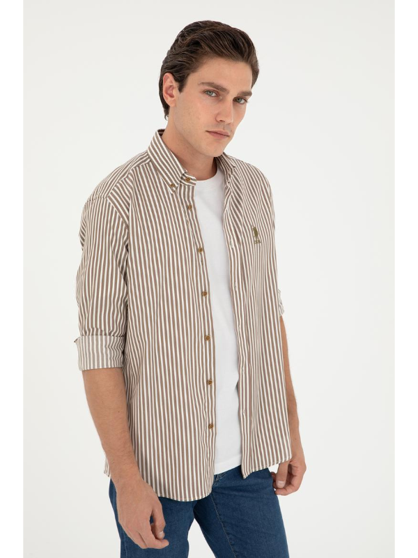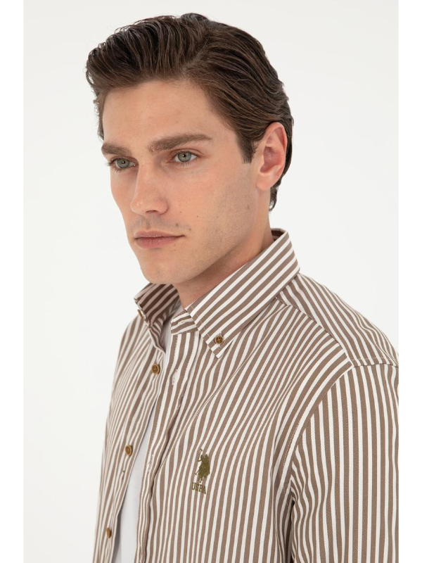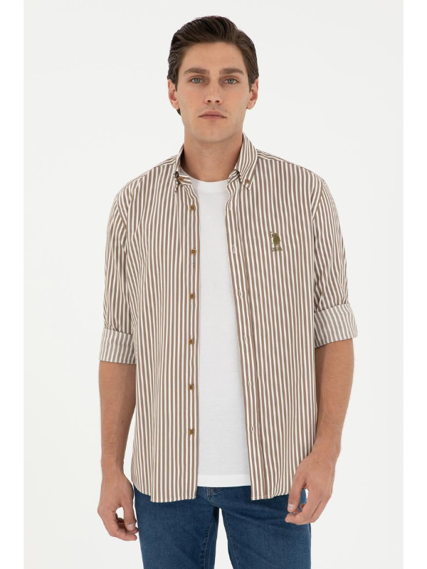 Muška U.S. POLO ASSN. kaki košulja dugih rukava na pruge