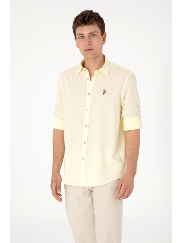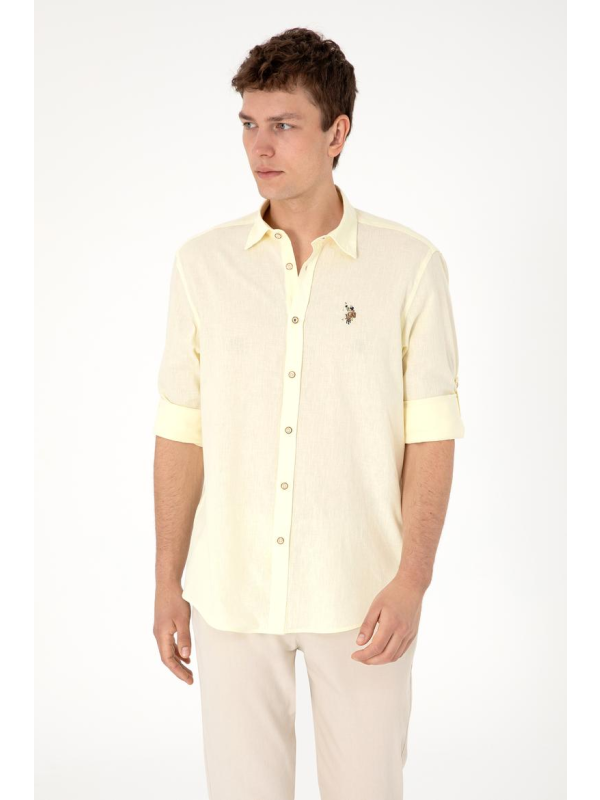 Muška žuta U.S. POLO ASSN. košulja dugih rukava s logom