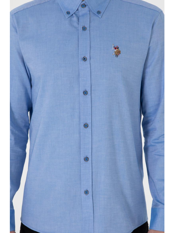 Muška plava U.S. POLO ASSN. košulja dugih rukava s logom