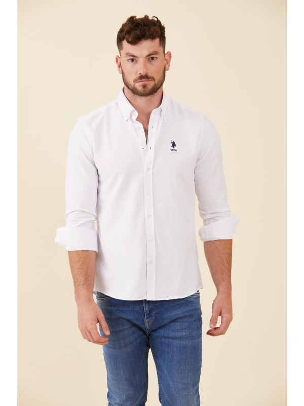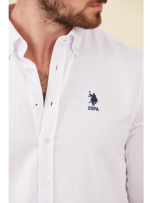 Muška bijela U.S. POLO ASSN. košulja dugih rukava s logom
