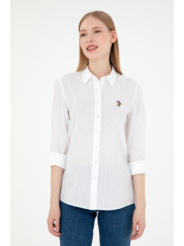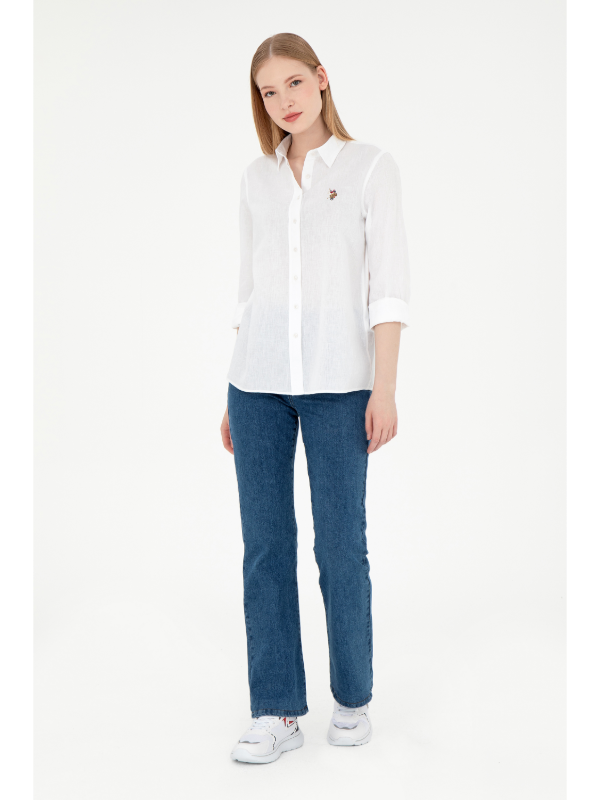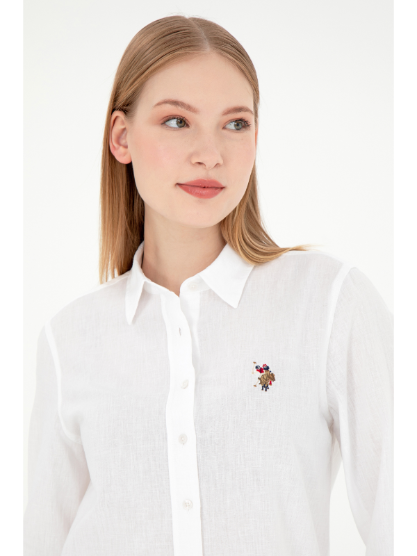 Ženska bijela U.S. POLO ASSN. košulja dugih rukava s logom