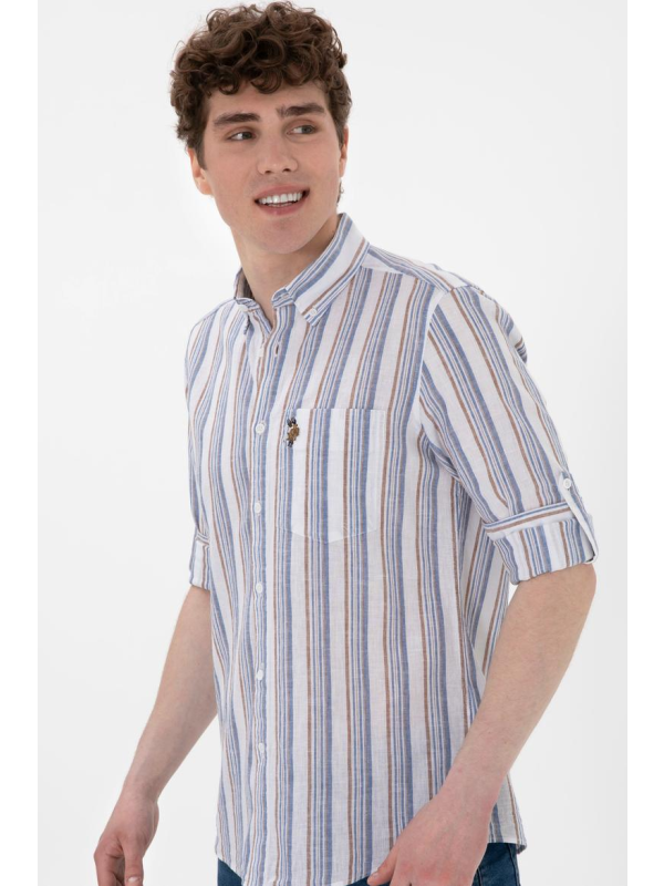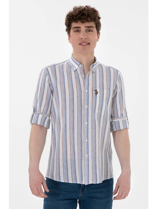 Muška multicolor U.S. POLO ASSN. košulja dugih rukava s džepom i logom na prsima