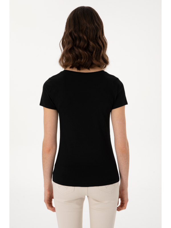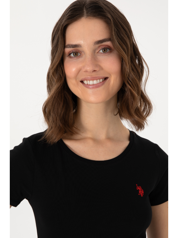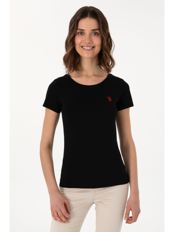 Ženska crna U.S. POLO ASSN. majica kratkih rukava s logom na prsima