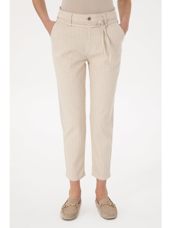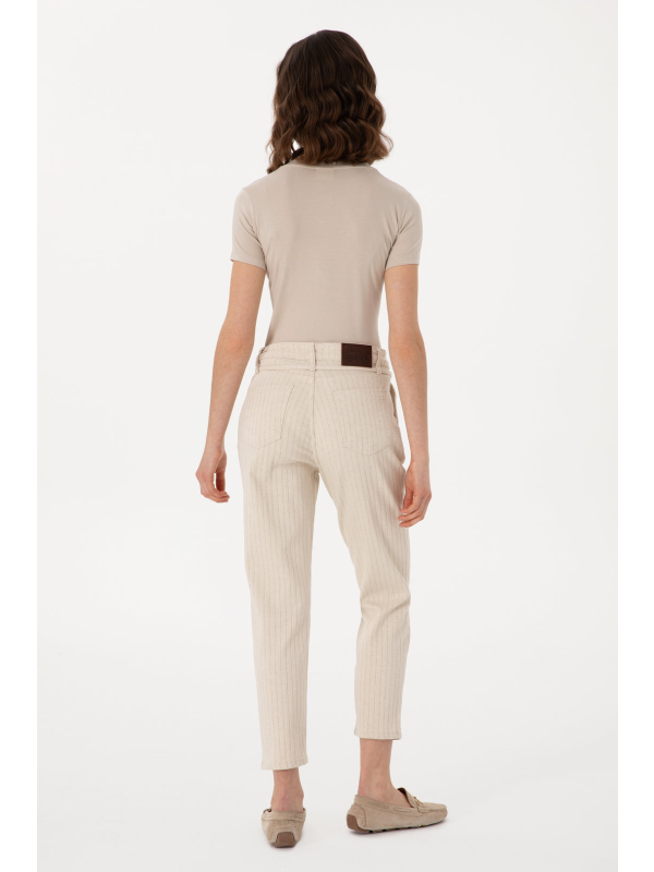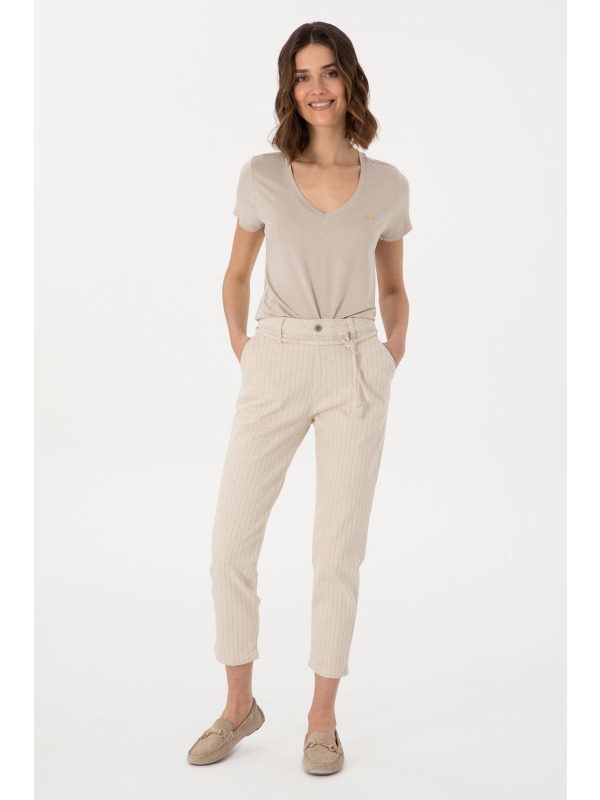 Ženske U.S. POLO ASSN. bež hlače na pruge