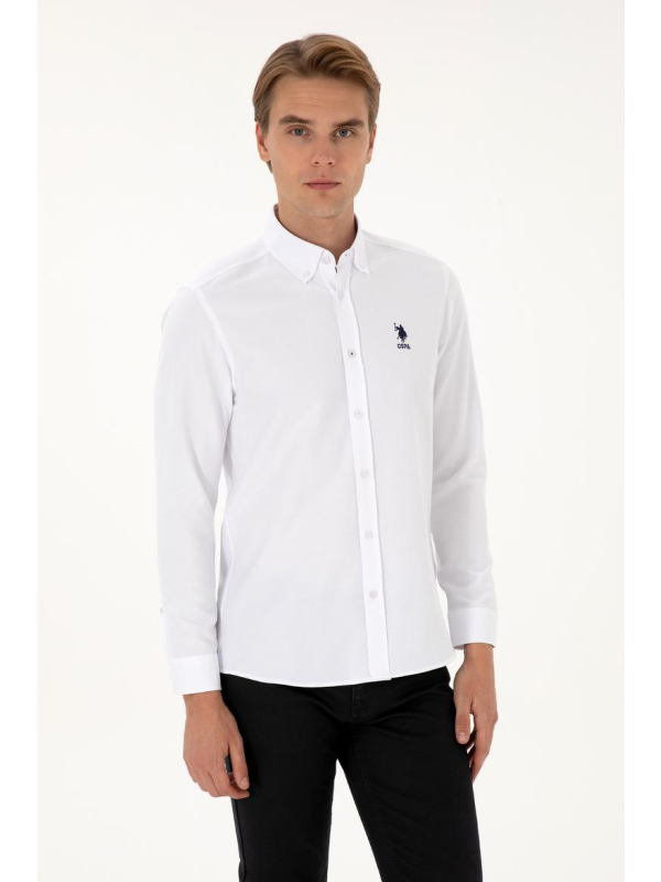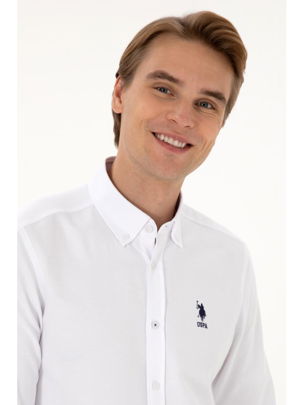 Muška bijela U.S. POLO ASSN. košulja dugih rukava s logom