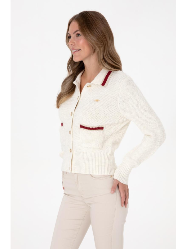 Ženski bijeli U.S. POLO ASSN. pulover na kopčanje