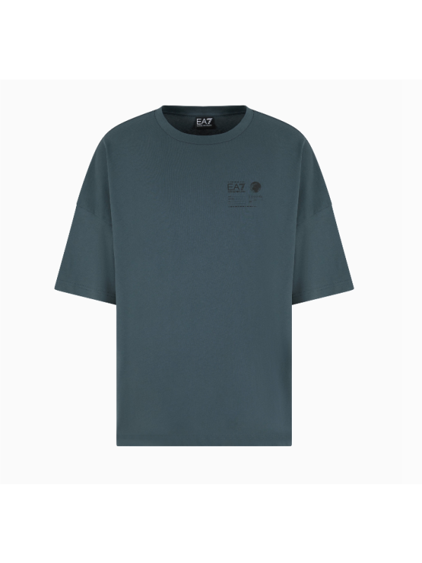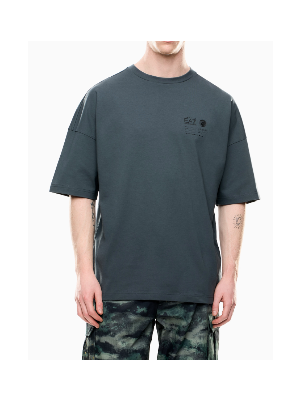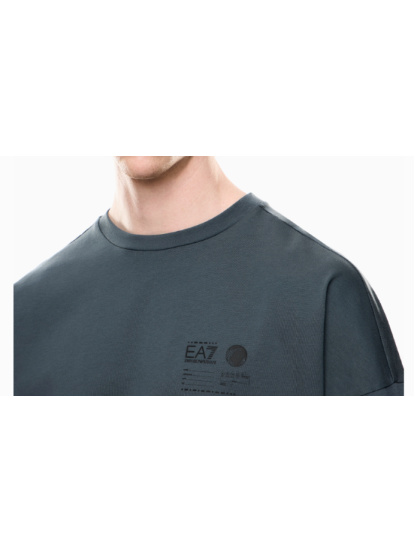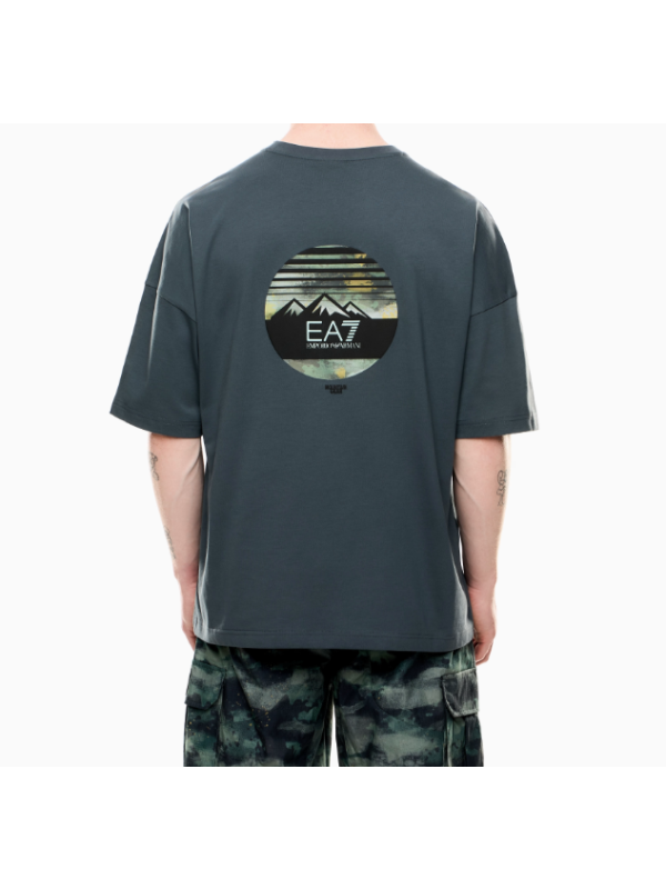 Muška siva EA7 majica kratkih rukava s logom na prsima i printom na leđima