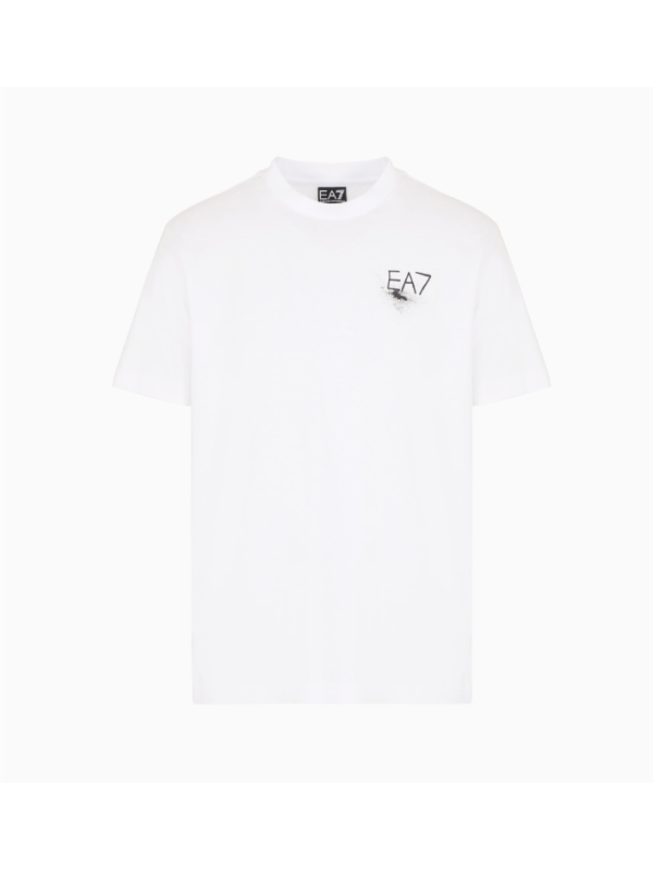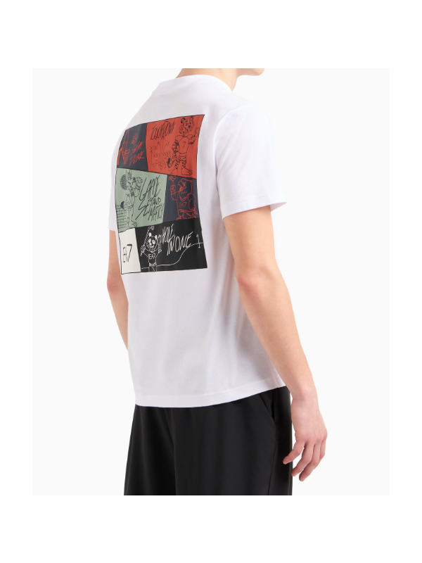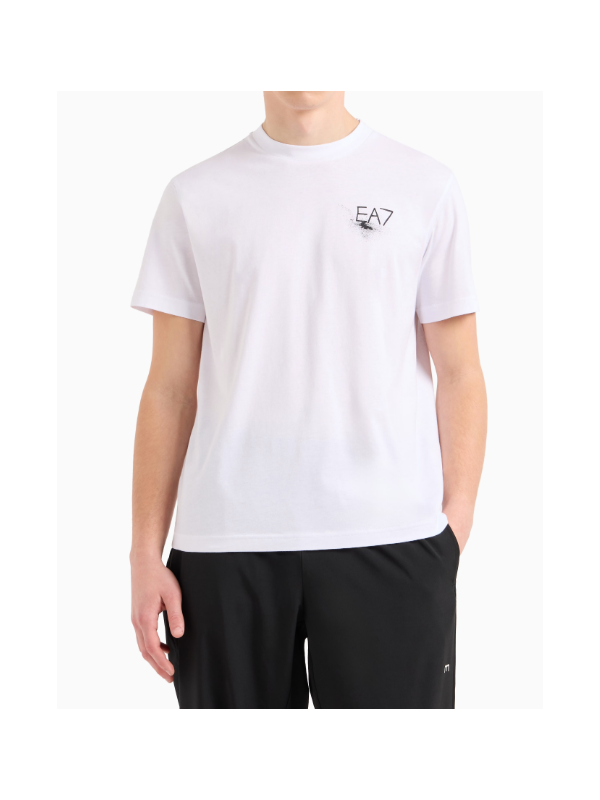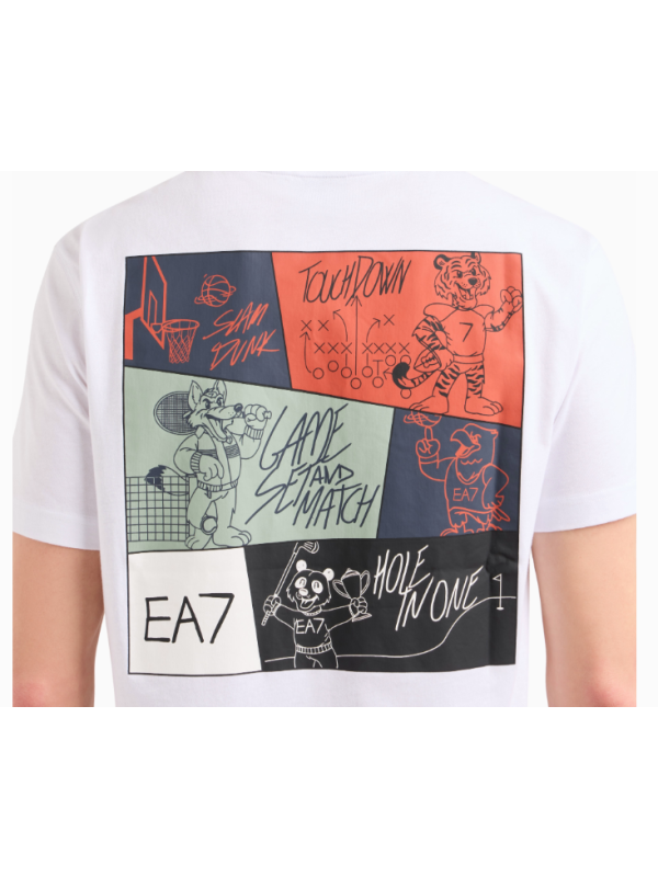 Muška bijela EA7 majica kratkih rukava s logom na prsima i printom na leđima