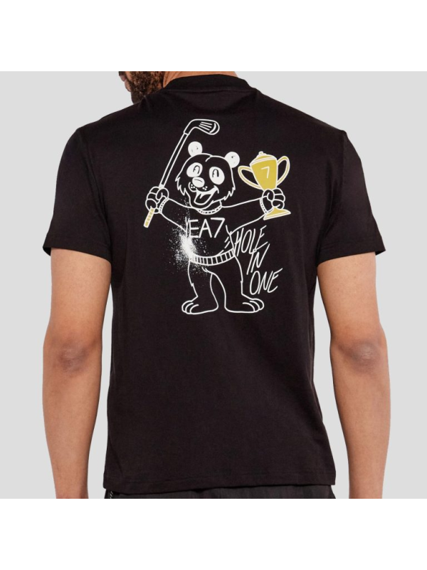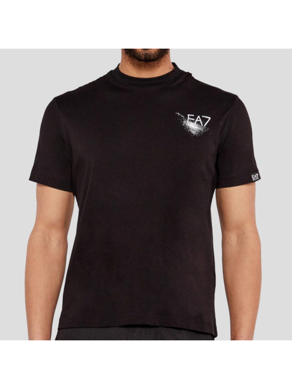 Muška crna EA7 majica kratkih rukava s logom na prsima i printom na leđima