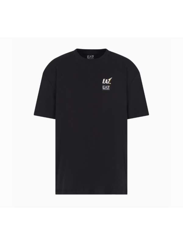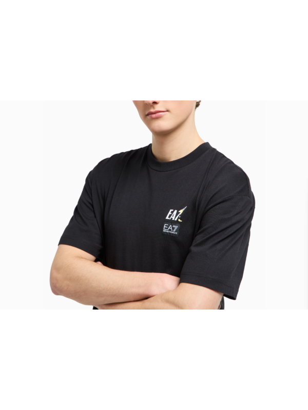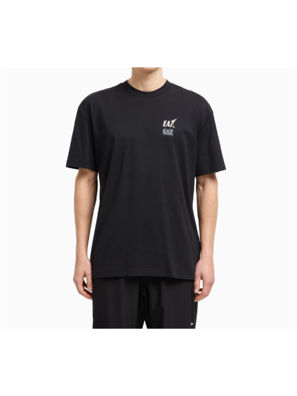 Muška crna EA7 majica kratkih rukava s logom na prsima i maxi printom na leđima
