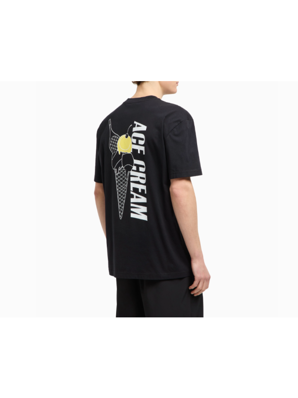 Majica s okruglim izrezom kratkih rukava izrađena od udobnog žerseja od čistog pamuka. Stil sadrži predimenzionirani ispis kolekcije na leđima, koji spaja svijet sporta s talijanskom kuhinjom, i kontrastni dvostruki EA7 logo na prsima. Šaren i razigran izbor, savršen za sport i slobodno vrijeme.