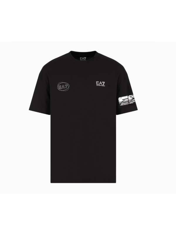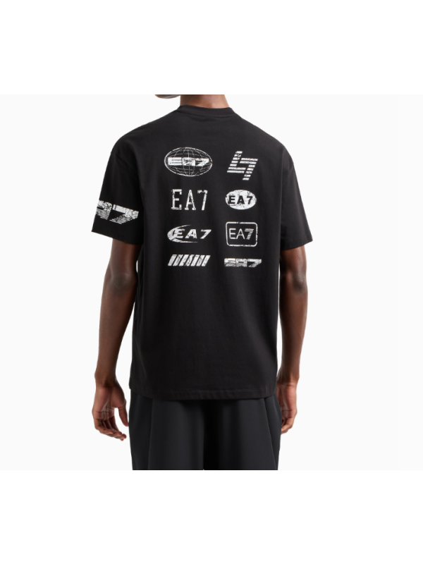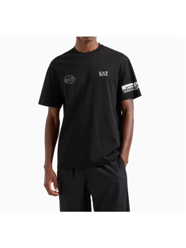 Muška crna EA7 majica kratkih rukava s logom i print detaljima